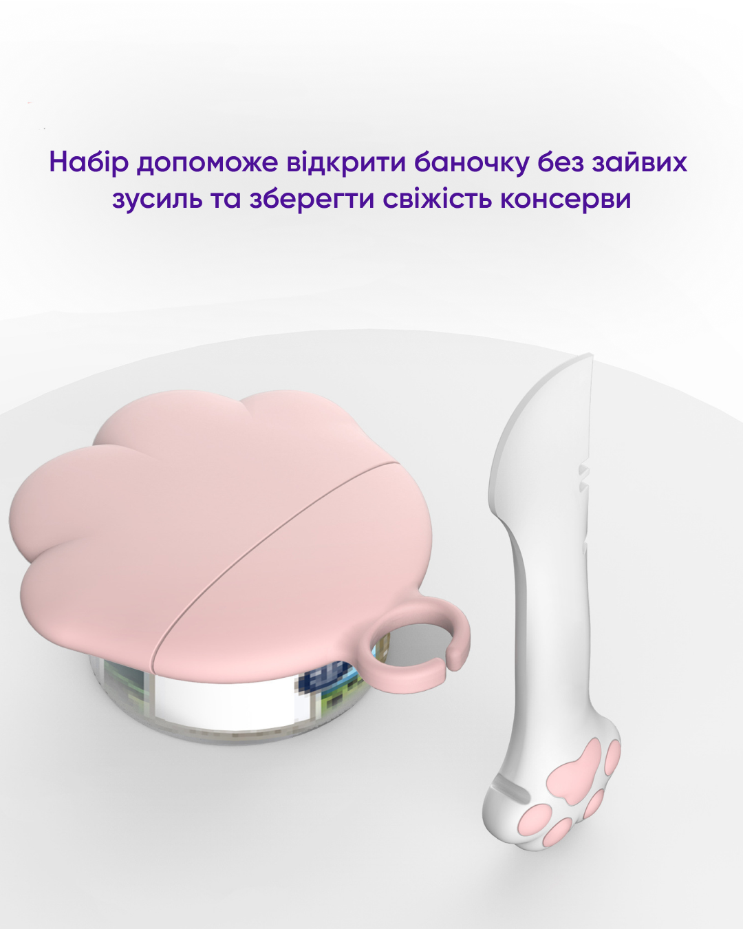 Збережіть свіжість улюбленої їжі вашого котика надовго! Кришечка-лапка виготовлена з безпечного харчового силікону, щільно закриває банку та захищає від запахів і бактерій. Універсальний дизайн підходить до більшості консервів (3 розміри в одному виробі: 6,9 см, 7,9 см і 8,9 см). У комплекті йде стильна ложечка у формі кісточки з лапкою, яка зручна для легкого діставання корму з банки, а спеціальна форма забезпечує комфортне використання.