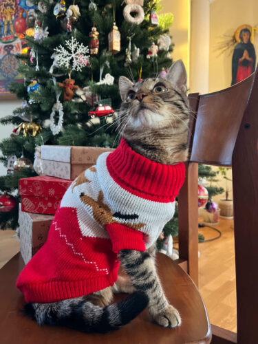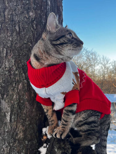 Затишний светрик з оленем подарує вашому котику тепло та комфорт. М’який матеріал приємний до тіла, а зручний крій не обмежує рухів та забезпечує ідеальну посадку. Светрик чудово зігріває в холодну пору та додає образу котика святкового настрою! Ідеальний вибір для щоденного носіння або різдвяних фото.