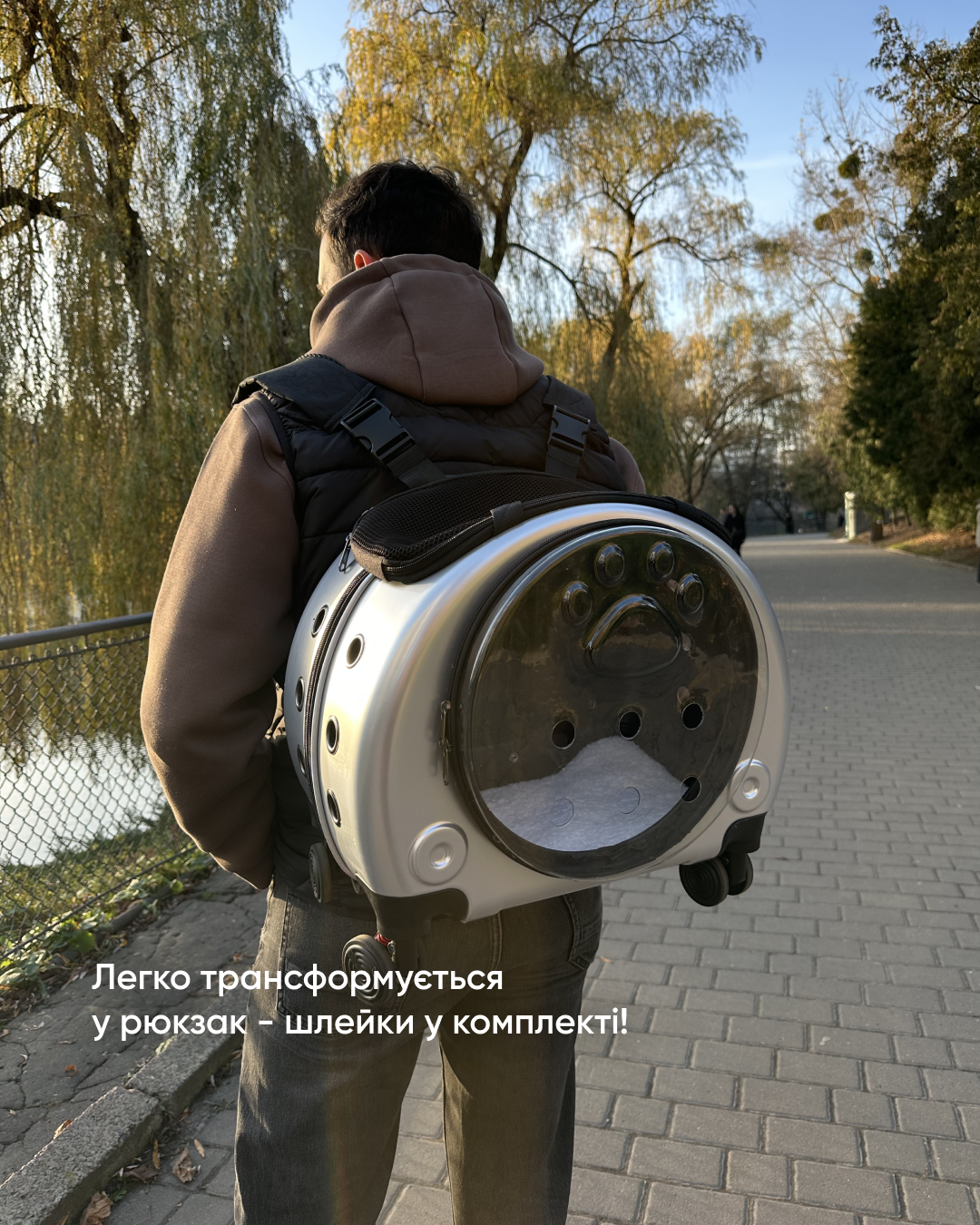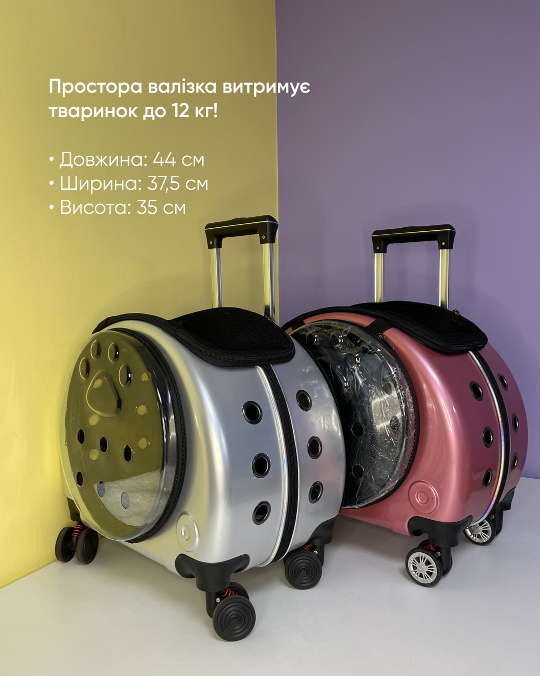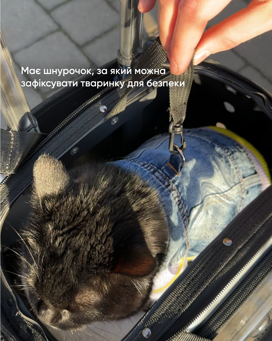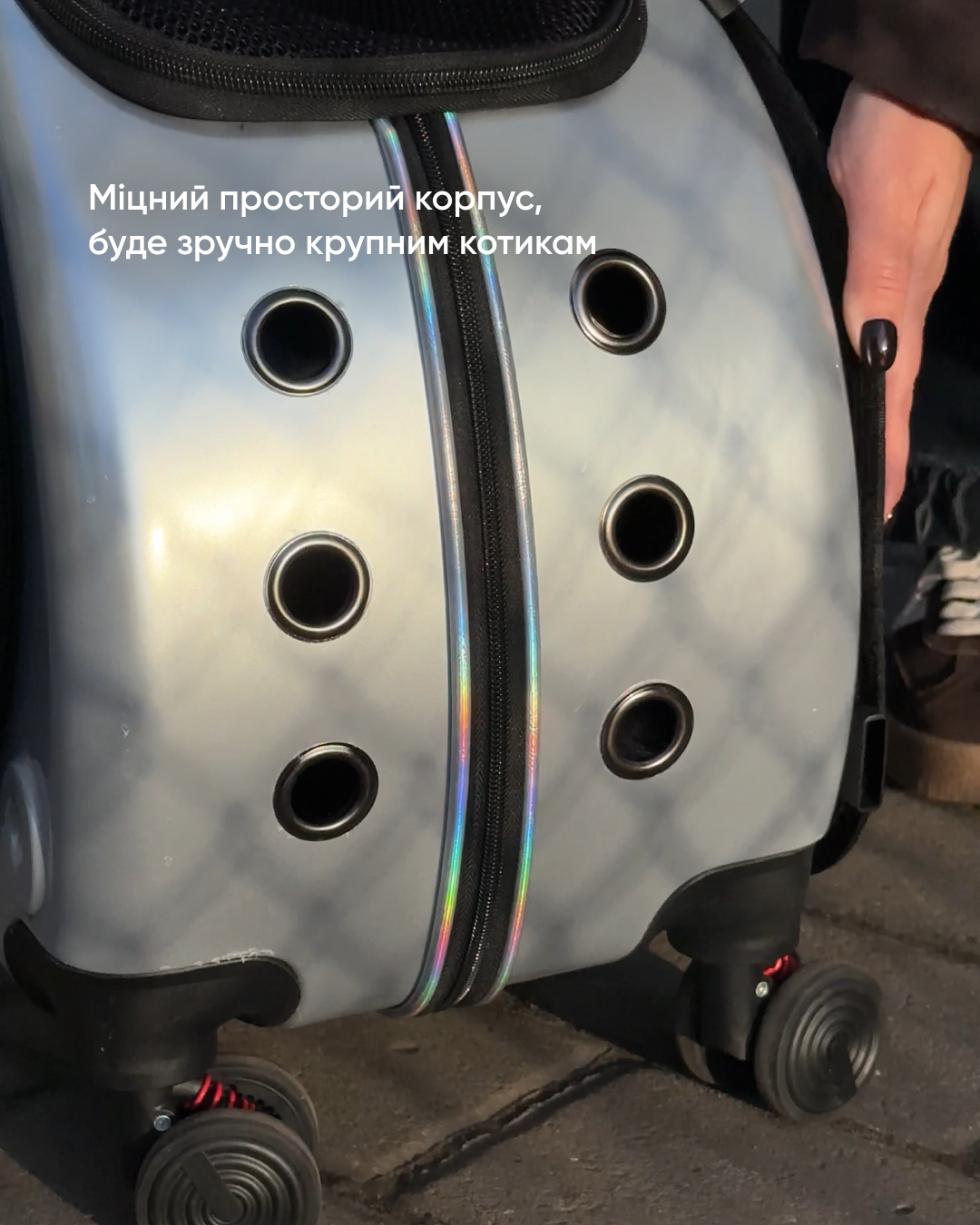 Зручна, міцна та стильна переноска у форматі валізки – ідеальний варіант для подорожей, прогулянок і візитів до ветеринара. Підходить навіть для великих котів, адже витримує вагу до 12 кг. Усередині є м’який килимок, надійний фіксуючий шнурок та якісні вентиляційні отвори. У комплекті також шлейки, щоб носити як рюкзак.