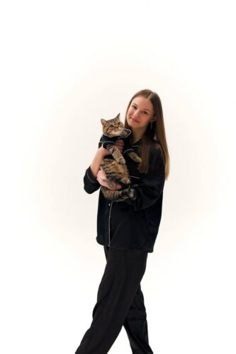 Французька піжамка для котиків доступна в класичному чорному та ніжно-рожевому кольорі. Підходить дорослим котикам стандартного розміру, а для пухкеньких мурчиків є лайфхак — можна не застібати останній ґудзик і все одно виглядати стильно! Ідеальний варіант для фотосесій та домашніх обіймашок з вашими котусиками.