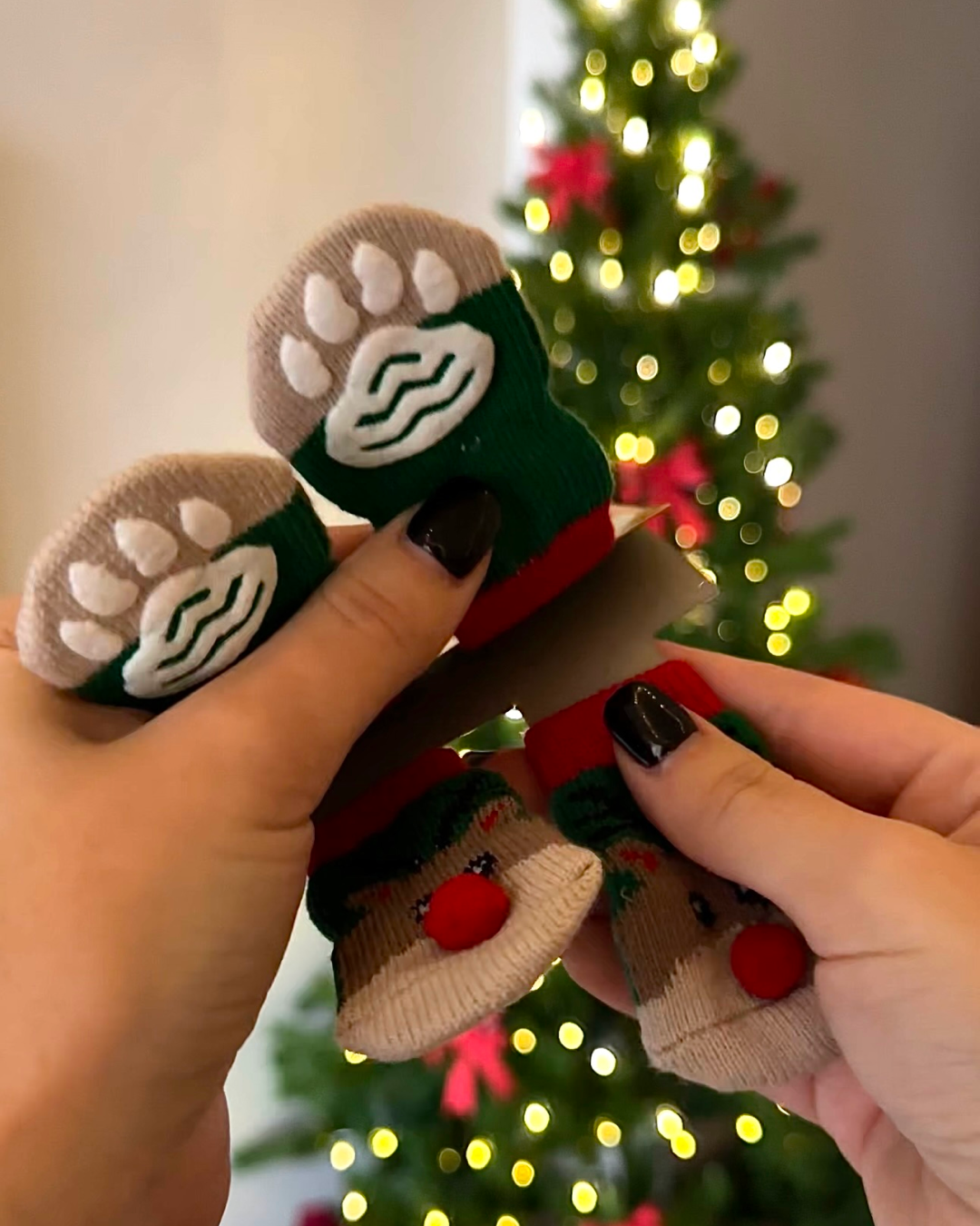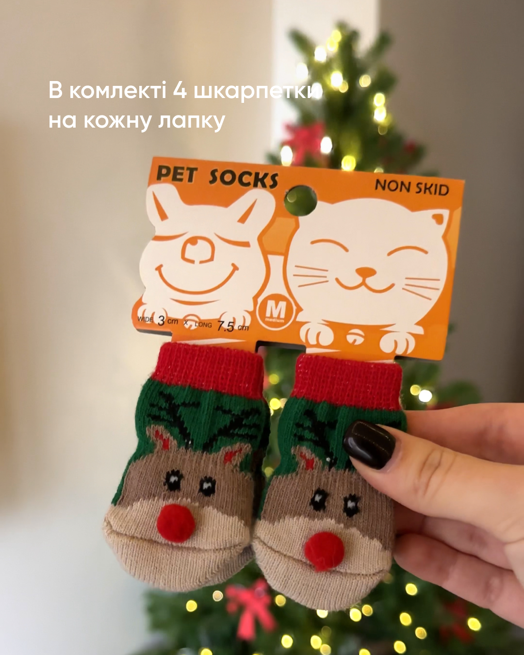 Новорічні шкарпеточки з оленями подарують вашому котику ще більше затишку та настрою! М’які, теплі й з антиковзким покриттям, вони не лише захищають лапки від холоду, а й додають образу трохи різдвяної магії. У комплекті 4 шкарпетки для кожної лапки, щоб ваш улюбленець був готовий зустрічати свята стильно й комфортно.